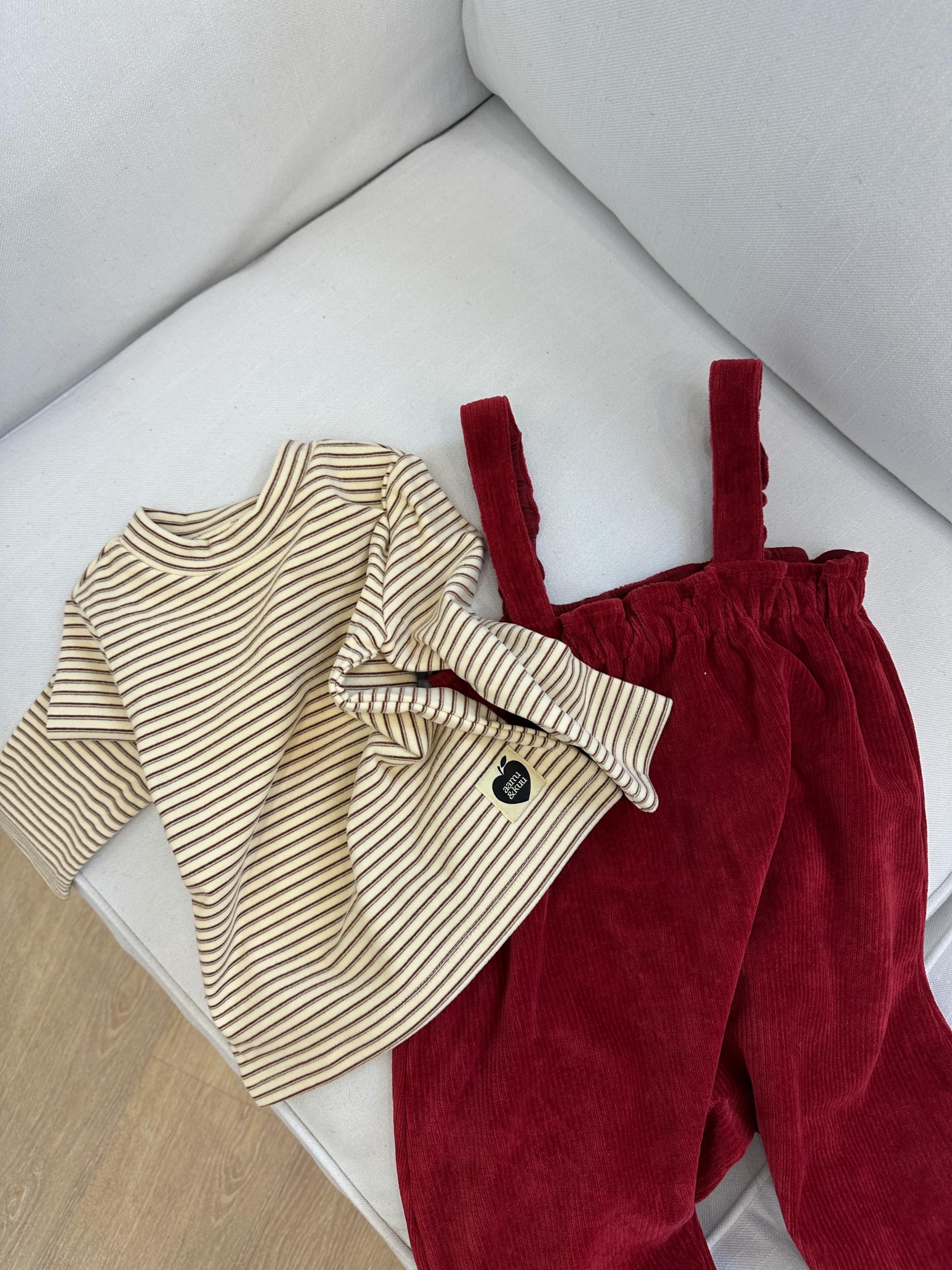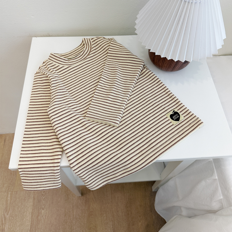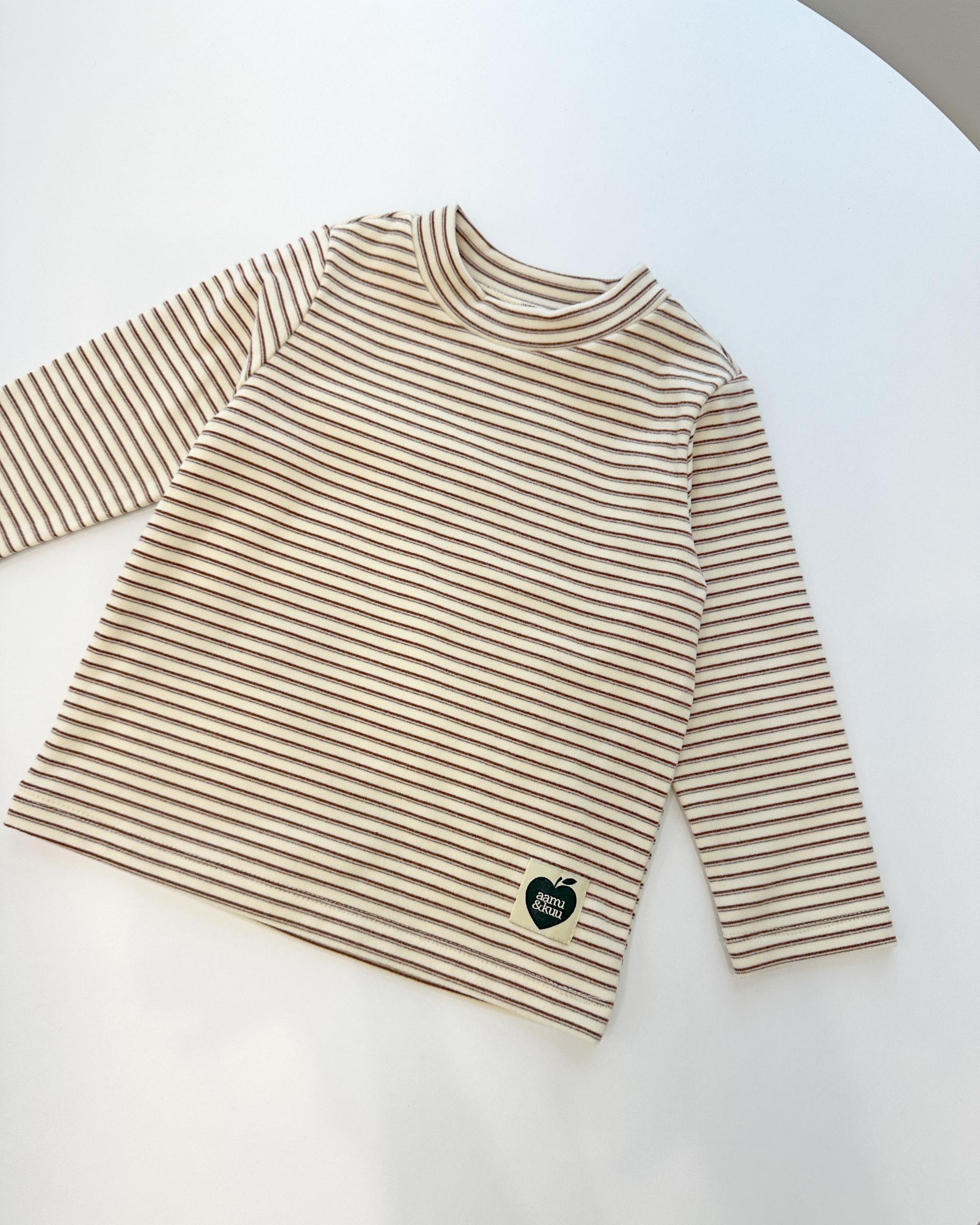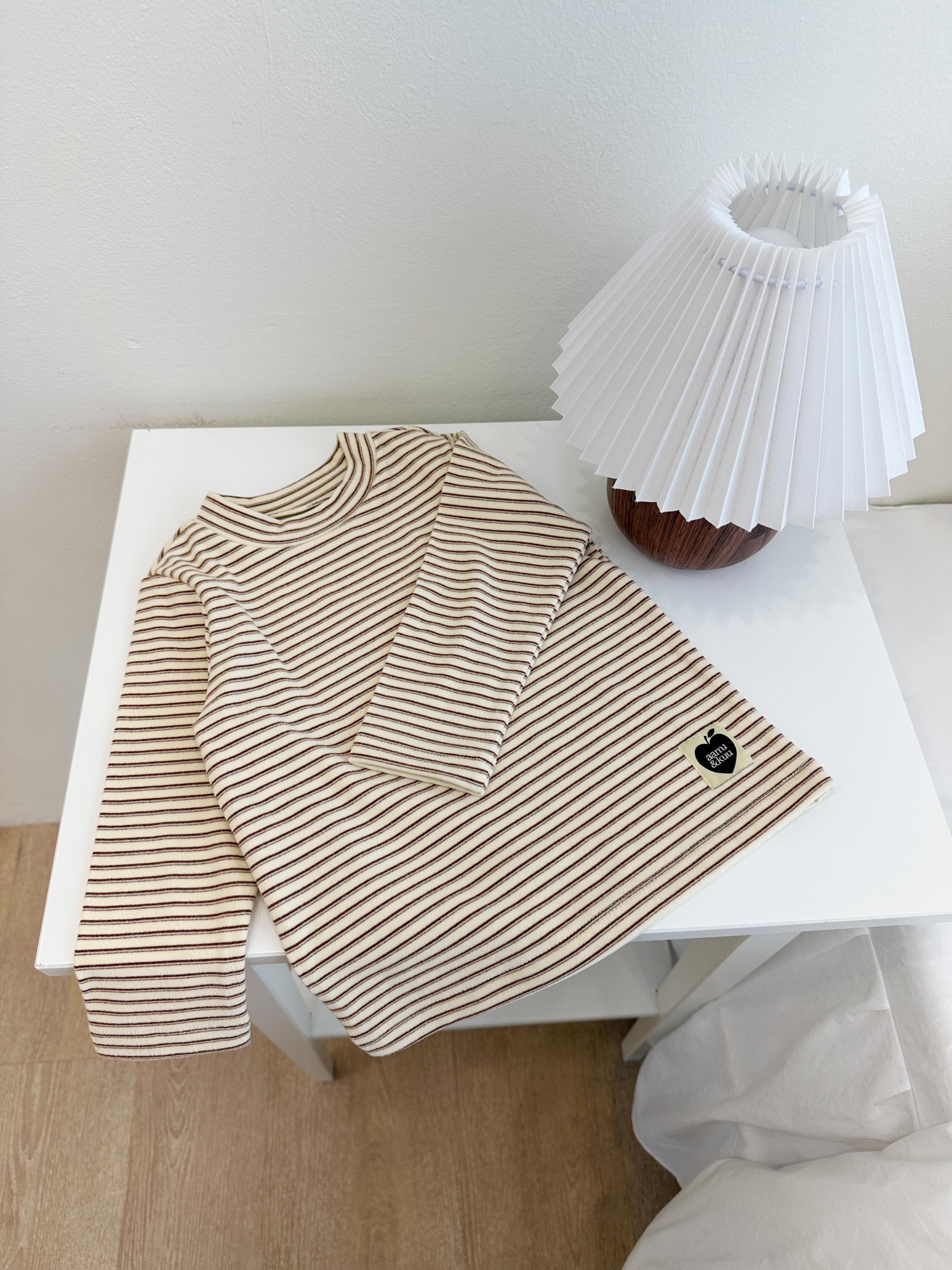 은은한 버터 컬러 바탕에 브라운 스트라이프가 더해져