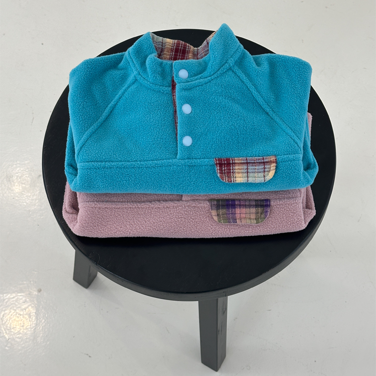 넥라인과 장식 포켓에 더해진 체크 배색이